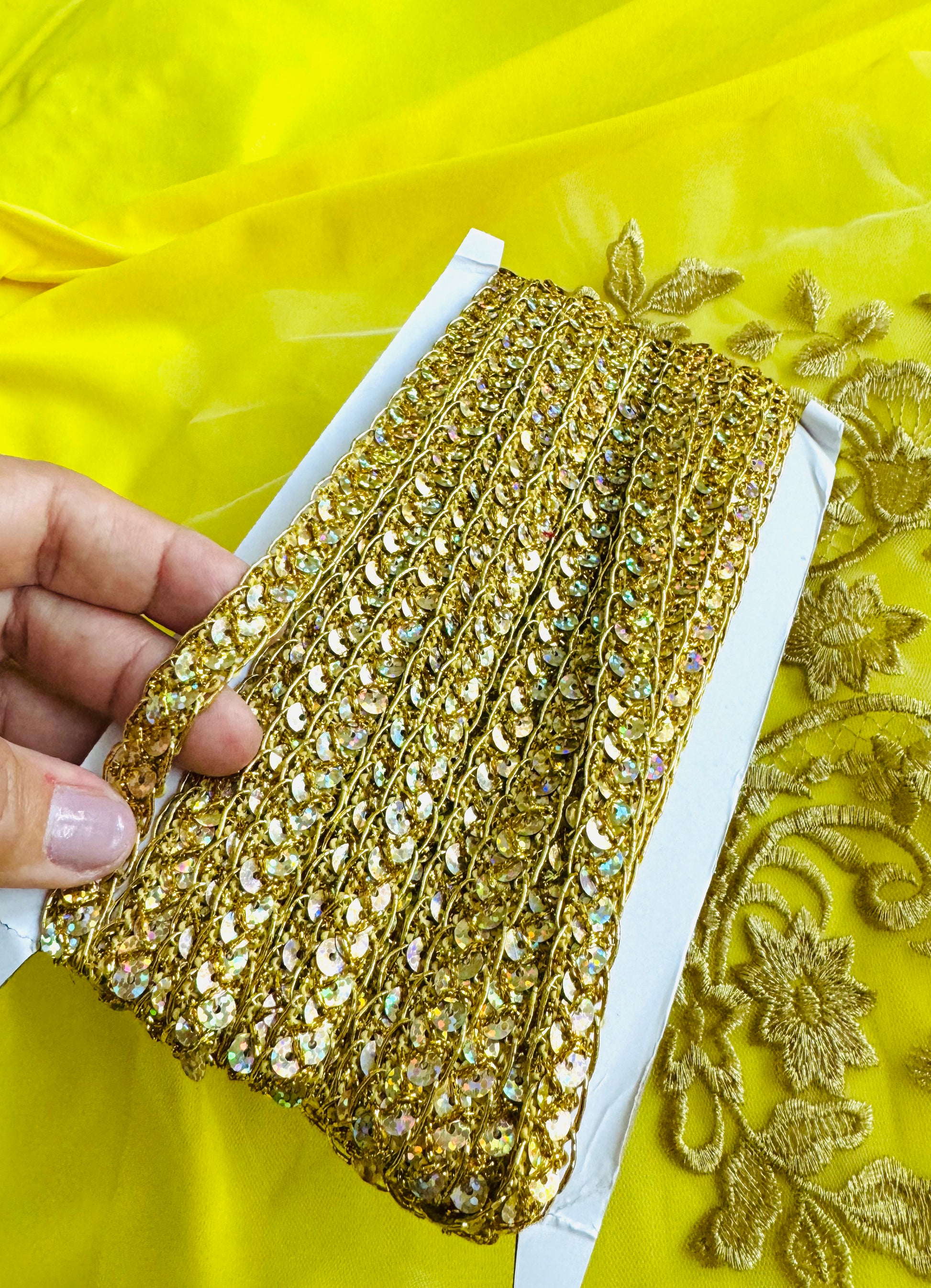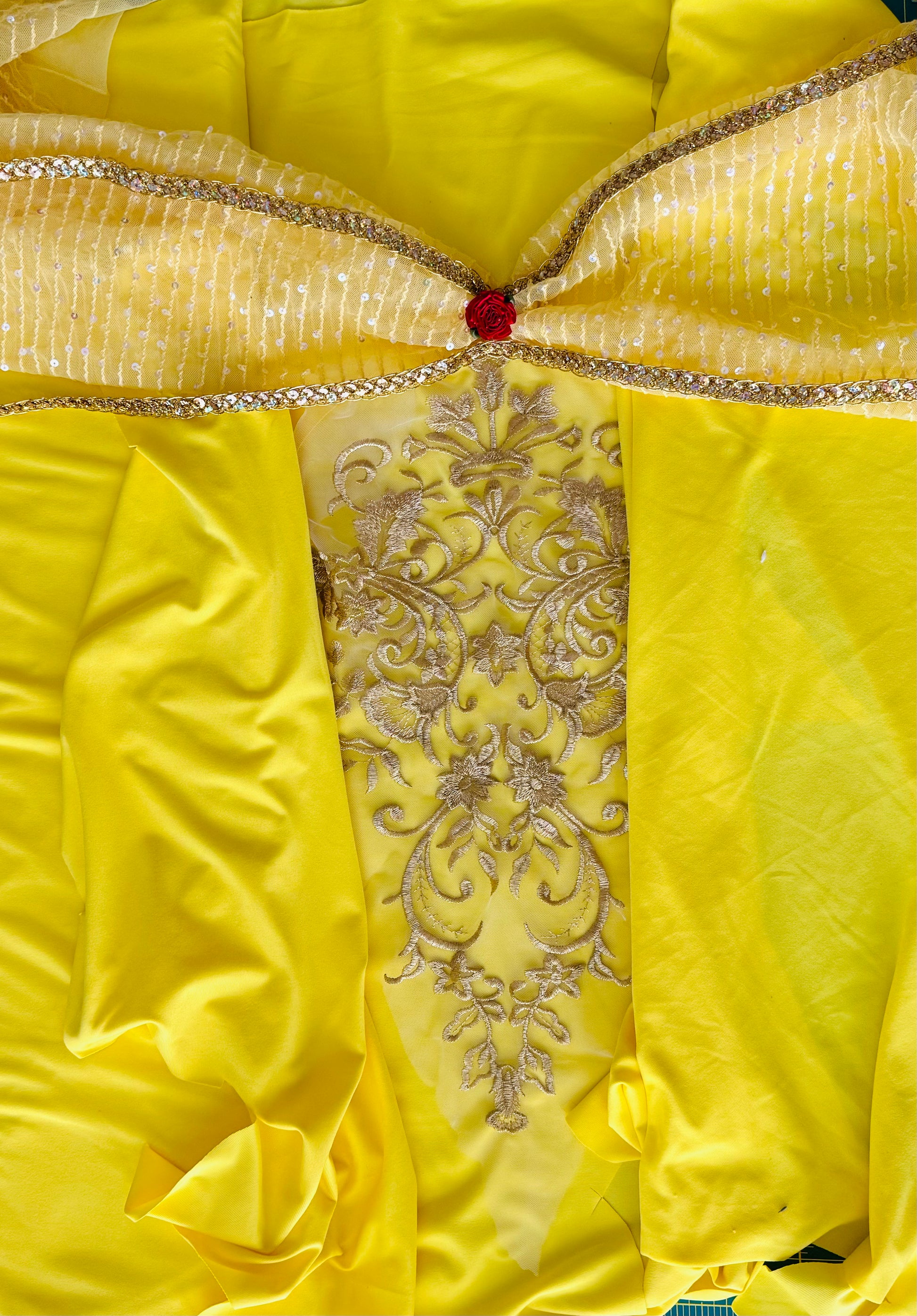 Three layer skirt; Yellow Satin, Yellow sequin mesh, under tulle, and Yellow Spandex waistband with 8" zipper
