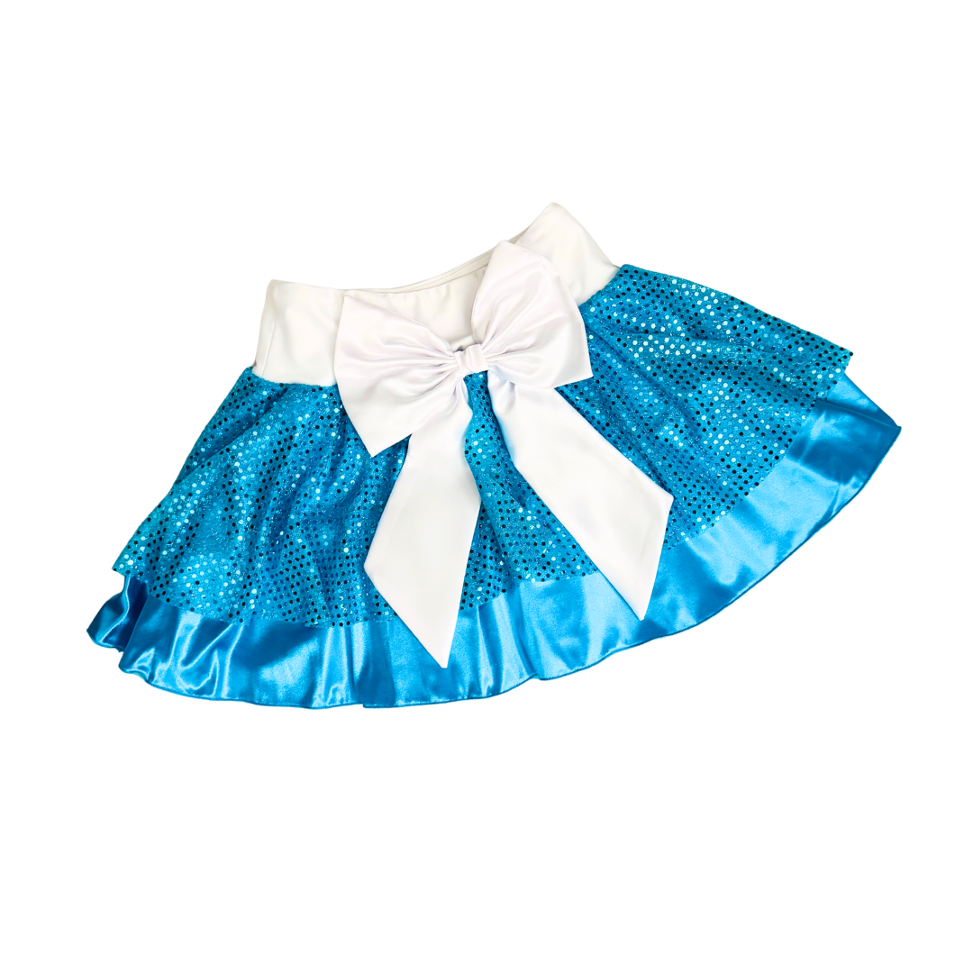 Two layer skirt: Turquoise confetti dot sequin over Satin